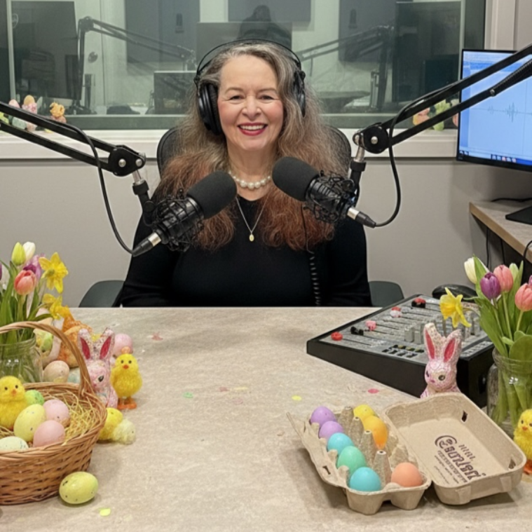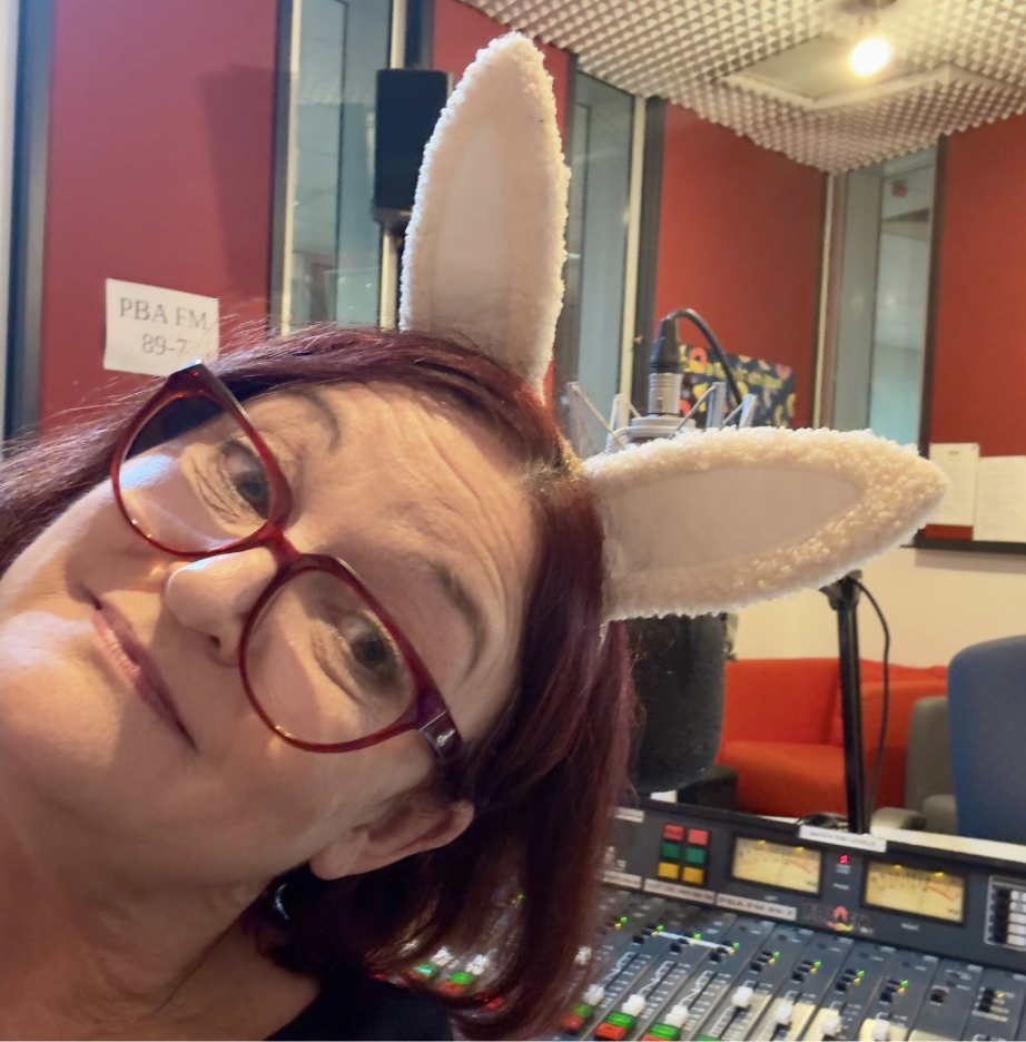 Di Spillane, host of Off the Label on PBA-FM, showing her Easter spirit.
